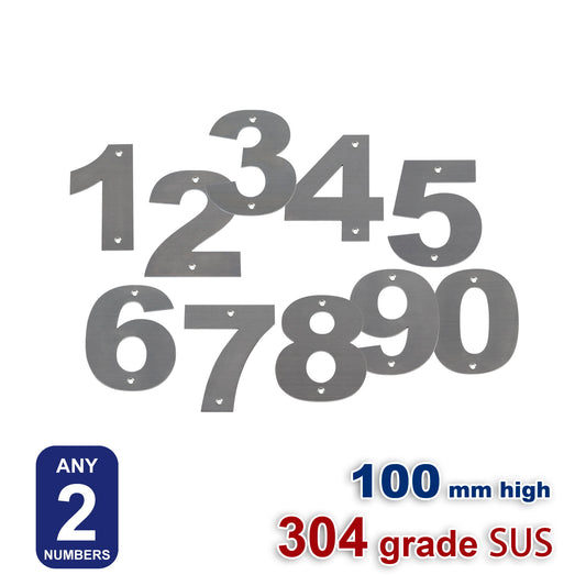 100 mm House Number Plate Stainless Steel Flat Sign Mail Letter Box Numbers 2x
