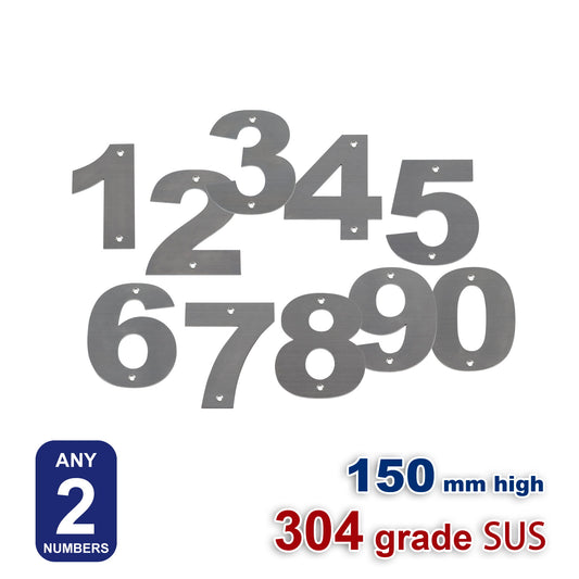150 mm House Number Plate Stainless Steel Flat Sign Mail Letter Box Numbers 2x
