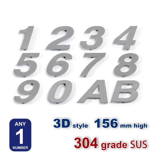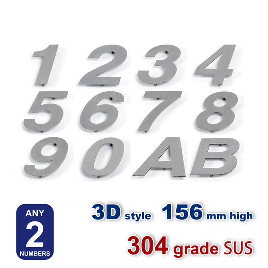 156 mm House Numbers Plate Stainless Steel 3D Flat Sign Mail Letters Post 2x
